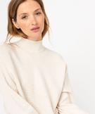 Gémo réinvente le concept du pull en maille côtelée avec une touche de modernité grâce à ses emmanchures chauve-souris. Cette pièce incontournable se distingue par une coupe généreuse, sublimée par des côtes horizontales. Le col montant en côtes plus fines lui confère une élégance discrète, on retrouve ces finitions élégantes sur les poignets. Le design unique de ce pull pour femme met en valeur votre silhouette tout en vous enveloppant de douceur. Il se marie facilement avec tous les bas ajustés du dressing, qu’il s’agisse d’une jupe crayon ou d’un pantalon slim.