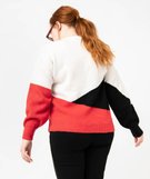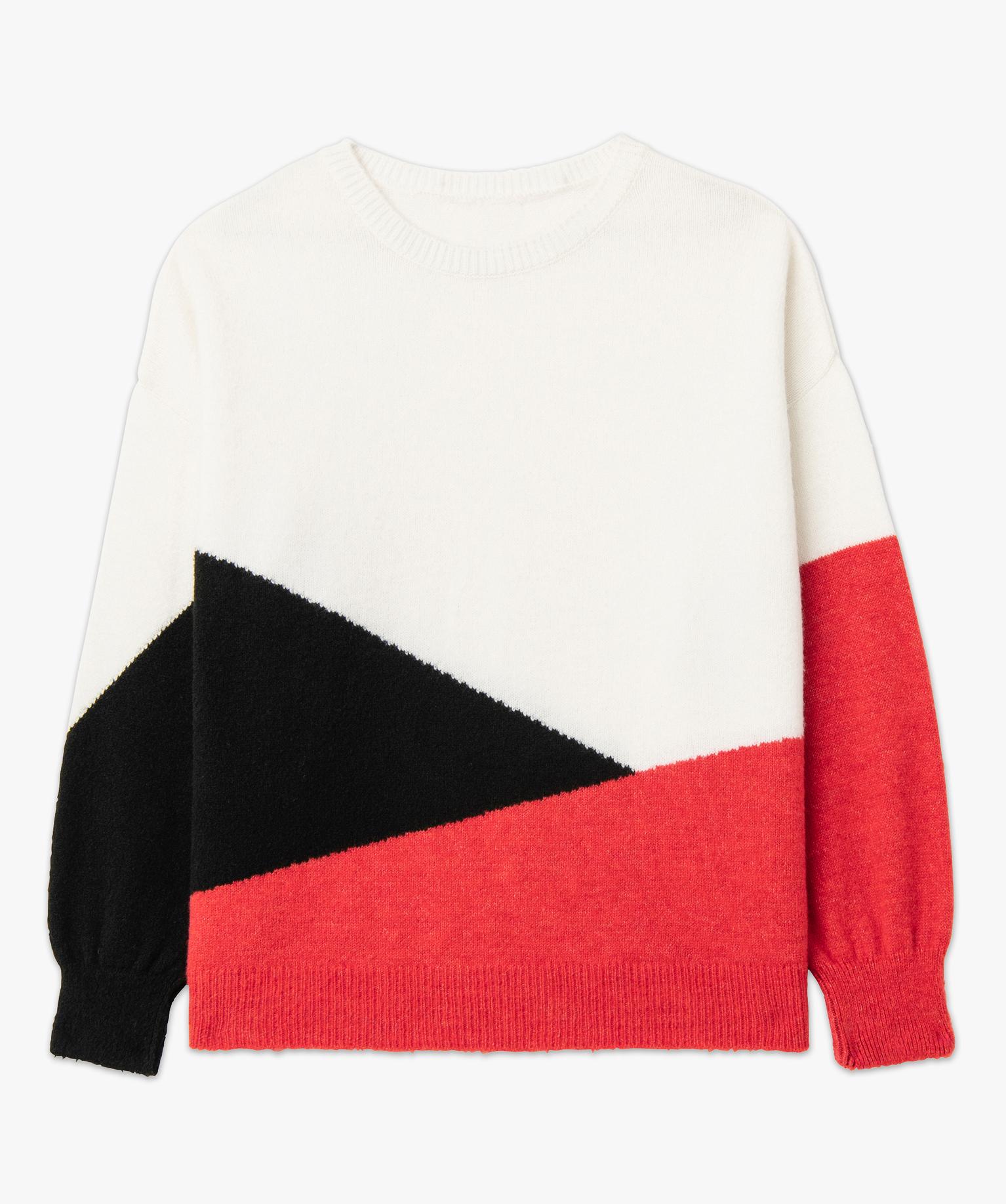 Craquez pour le design original de ce pull pour femme grande taille (du 46/48 au 54/56). Un pull tricolore affichant un bel effet graphique et une allure résolument contemporaine. Il affiche une allure loose grâce à des emmanchures descendues. Ce pull à col rond sera le meilleur allié d’un pantalon slim et d’une paire de boots. Finitions bord-côte.
