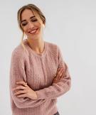 Pull à col rond boutonné en maille fantaisie femme rose clair