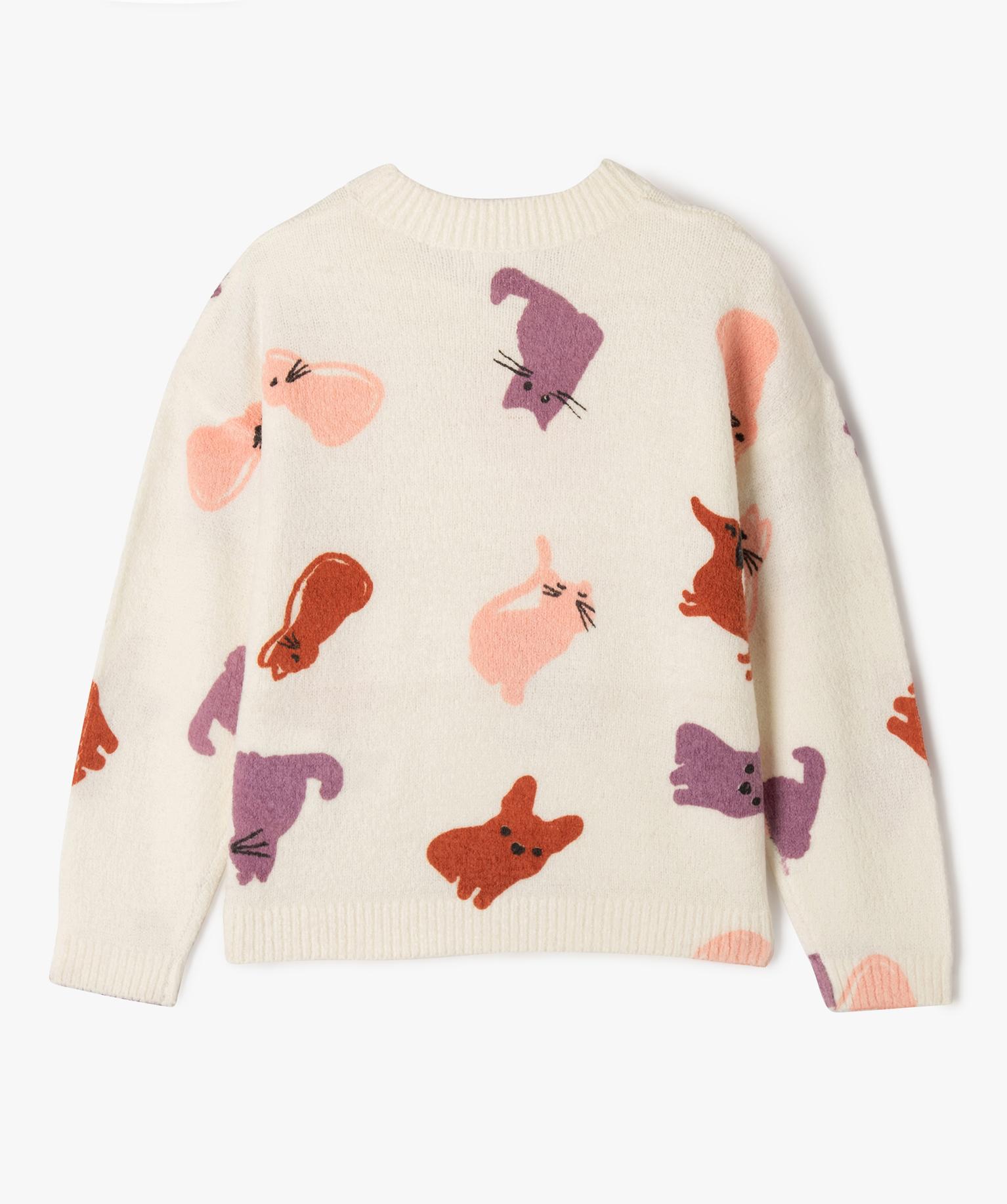 Un pull pour fille totalement craquant avec ses adorables motifs multicolores ! Il apportera une touche de fantaisie à toutes les tenues des petites modeuses. Ce pull imprimé présente une coupe ample qui offre à la fois confort et style. Il est tricoté dans une maille douce, confortable et extensible, offrant une sensation agréable sur la peau. Polyvalent, il peut être porté seul pour une allure décontractée, ou sur une chemise. Ce pull coloré sera parfait pour booster les looks des enfants en leur ajoutant une touche de bonne humeur !