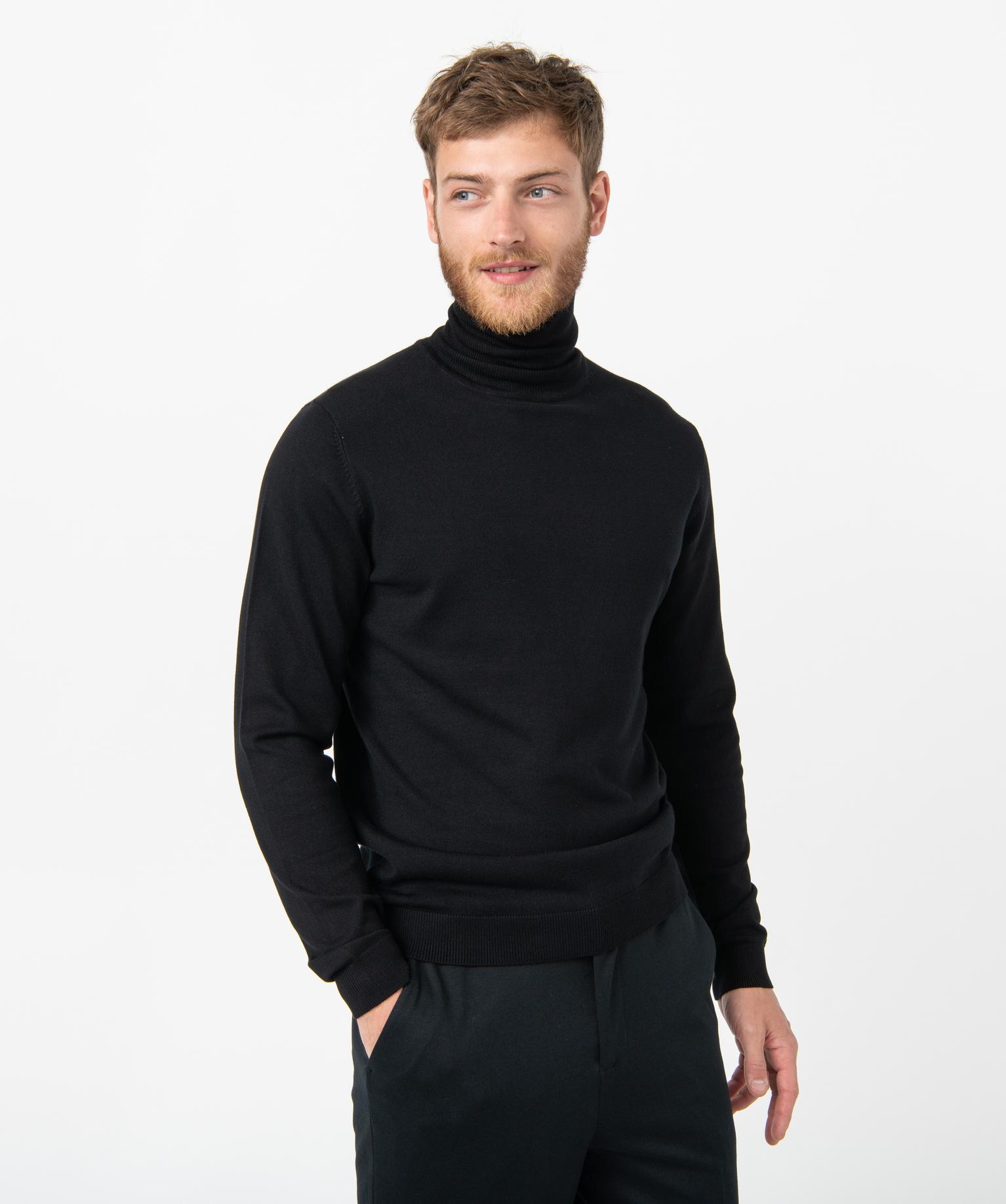 Pull à col roulé en maille fine homme noir