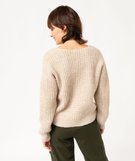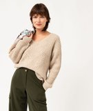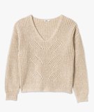 Pull à col V en maille ajourée à paillettes femme ecru