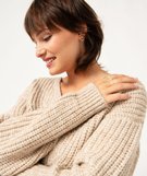 Ce joli pull en grosse maille incrusté de fil scintillant ajoutera une touche de lumière dans le vestiaire féminin. Un pull femme qui doit toute son originalité à sa maille fantaisie et ajourée sur l’avant. Il possède un large col en V qui met le décolleté en valeur et des finitions bord-côte aux poignets et dans le bas. On porte ce pull pailleté seul ou sur une chemise pour un look au top de la féminité.