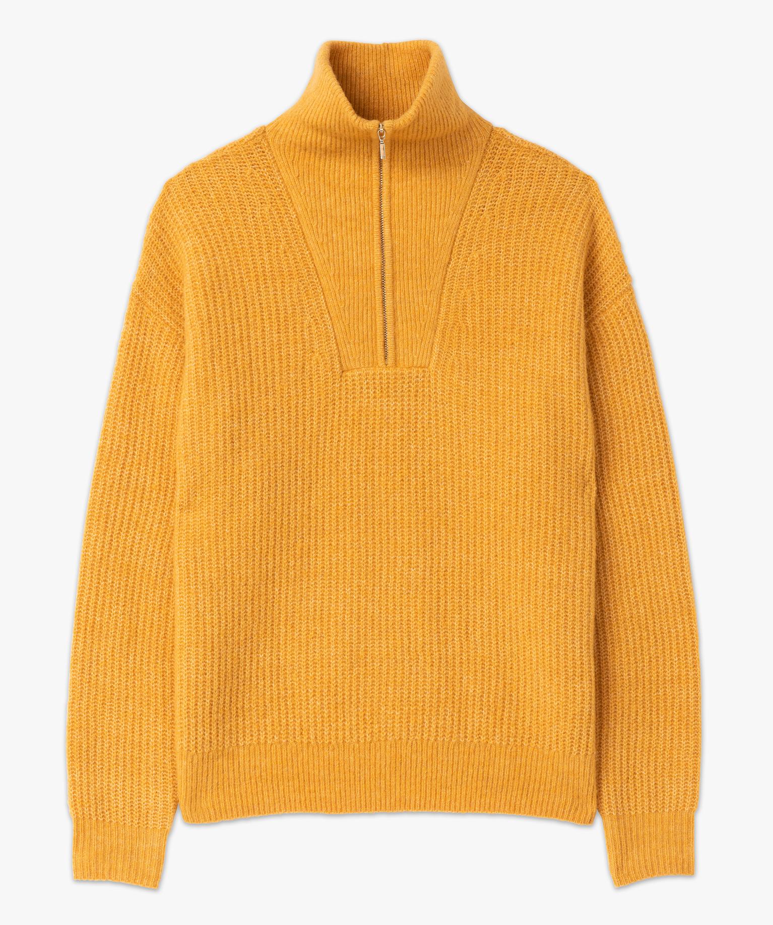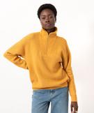 Pull à col zippé en gosse maille femme ocre