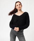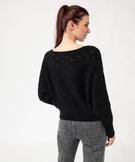 Pull à manches chauve-souris en maille fantaisie femme noir