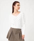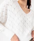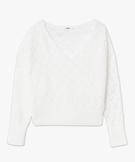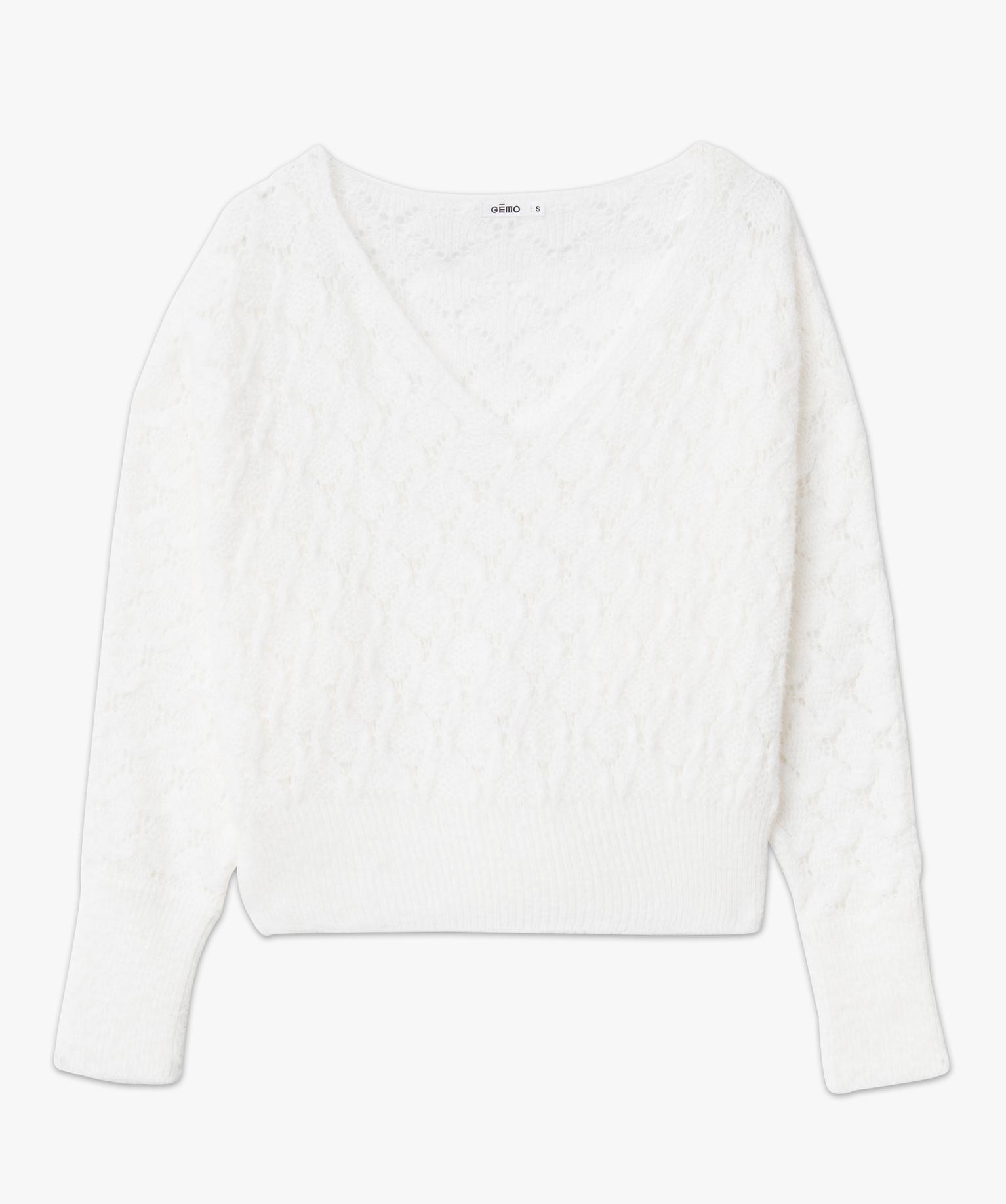 Pull à manches chauve-souris en maille fantaisie femme blanc