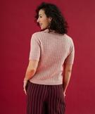 Pull à manches courtes en maille fantaisie femme rose