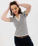 Pull à manches courtes rayé façon polo femme - LuluCastagnette ecru