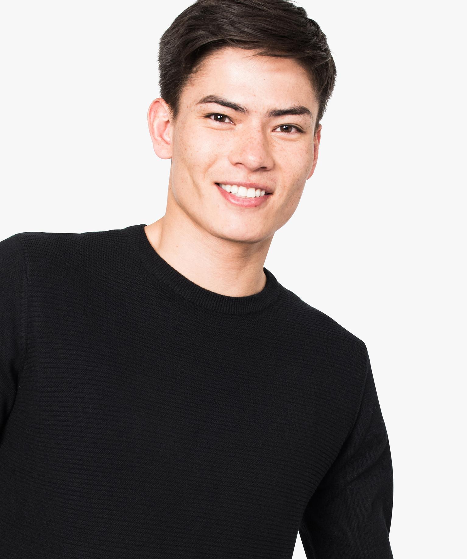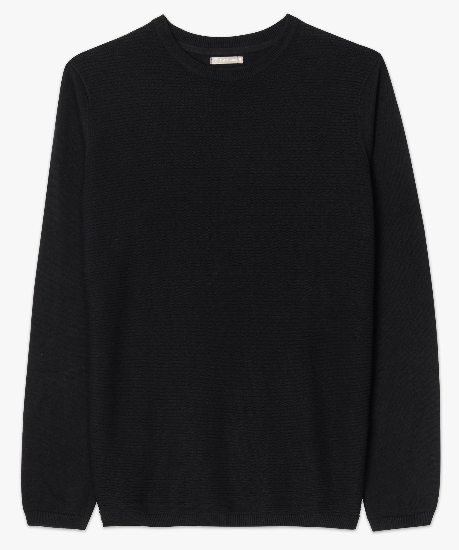 Pull à manches longues en côtes 1/1 sur le devant noir