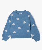 Pull à motifs coeurs pailletés fille bleu