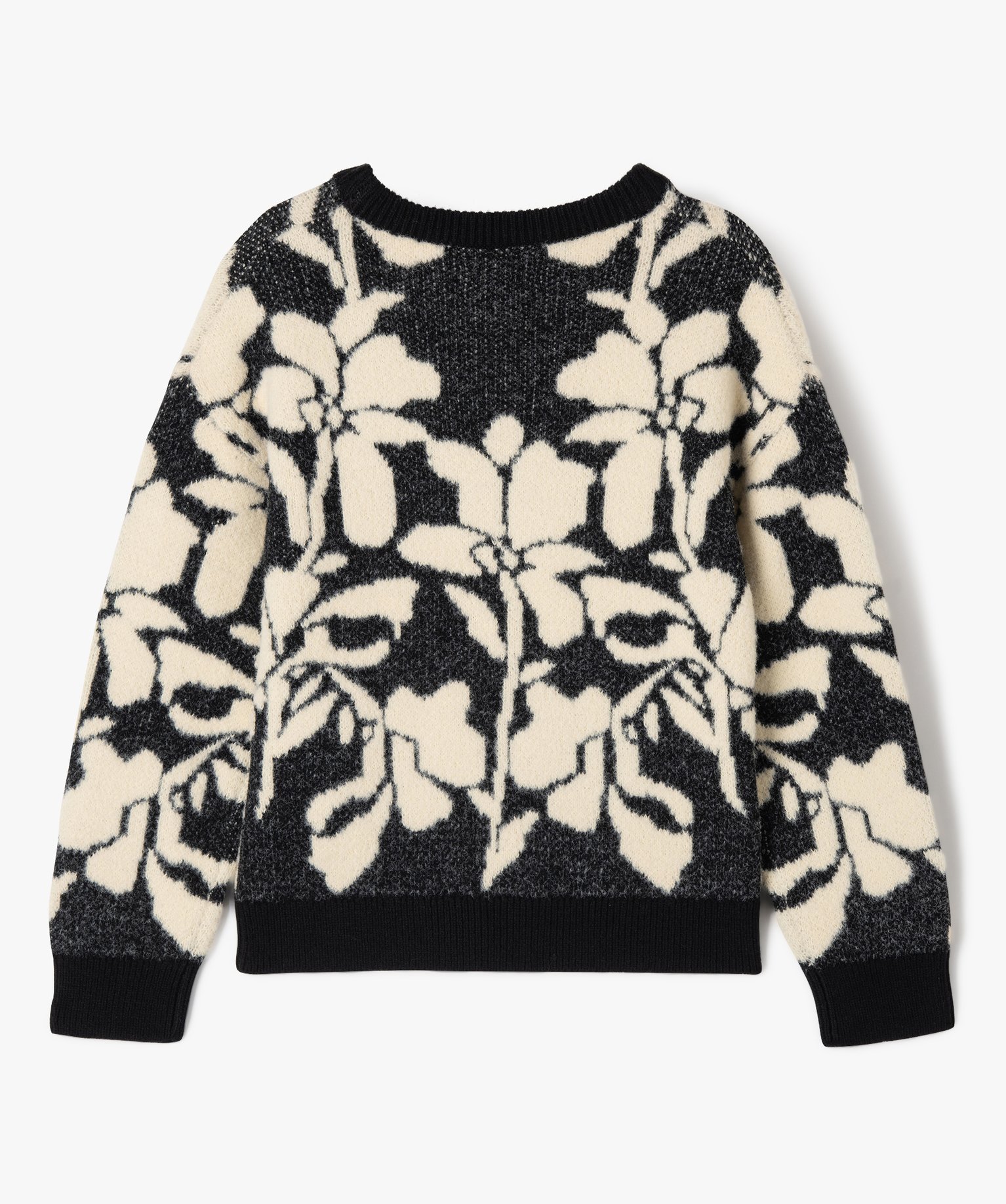 On craque pour ce pull pour fille orné de jolis motifs floraux. Votre enfant va adorer sa matière douce et extensible, si agréable à porter. Un pull LuluCastagnette aux accents girly qui se marie aussi bien avec un jean et des baskets qu'avec une jupe et des derbies. Finitions bords-côtes au col, aux poignets et dans le bas.
