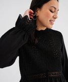 Pull ajouré avec manches chemise femme noir