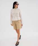 Alliant raffinement et originalité, ce pull en maille ajourée séduit par ses détails inspirés de la tendance bohème. Sa bande brodée et sa basque en coton aux finitions dentelées apportent une touche délicate et féminine. Doté de manches chemise en coton, subtilement froncées aux poignets, ce pull pour femme mise sur le mélange de matières pour une allure élégante. Son col rond ondulé vient parfaire son charme romantique et intemporel. Une pièce inédite à porter avec un pantalon ample pour une allure décontractée pleine de charme.
