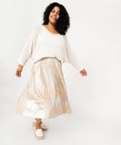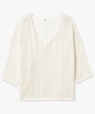 Ce sublime pull scintillant illuminera toutes vos tenues ! On craque pour sa coupe ample accentuée par des manches 3/4 à emmanchures chauve-souris et sa large encolure en V. Sa maille ajourée incrustée de fil pailleté offre une jolie transparence. Ce pull femme grande taille (du 46/48 au 54/56) se porte sur un top à bretelles ou un tee-shirt uni. Finitions bord-côte aux poignets et dans le bas.