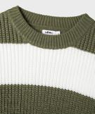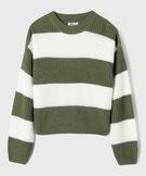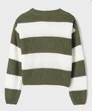 Pull ample et court à rayures en grosse maille fille kaki