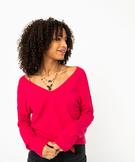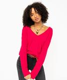 Pull avec double col V et manches fantaisie femme rose