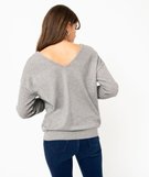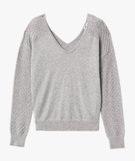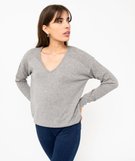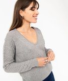 Pull avec double col V et manches fantaisie femme gris