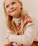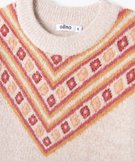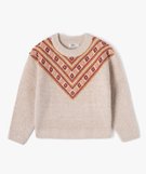 Ce pull en maille s’inspire des pull jacquard et affiche un large motif en V sur le haut du buste, un motif élégant illuminé par de délicates touches pailletées. Ce pull fille est tricoté dans une maille chinée douce offrant un confort exceptionnel. Il affiche une coupe droite avec col rond, facile à porter en toutes circonstances. Ce joli pull à motifs se porte avec un jean ou un pantalon chino et une paire de boots pour un look casual chic. Finitions bord-côte au col, aux poignets et dans le bas.