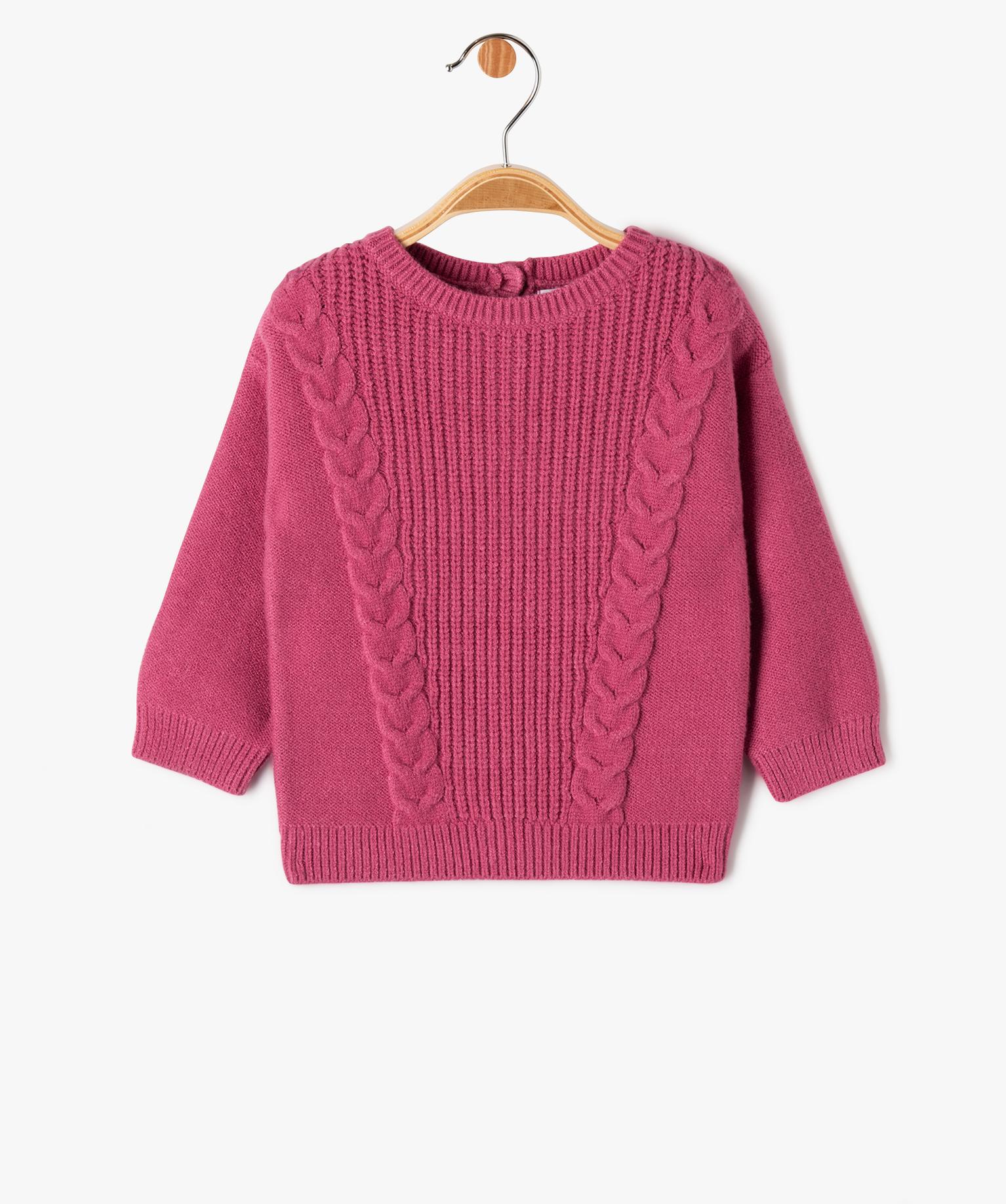 Pull bébé fille tout doux en maille fantaisie rose fonce