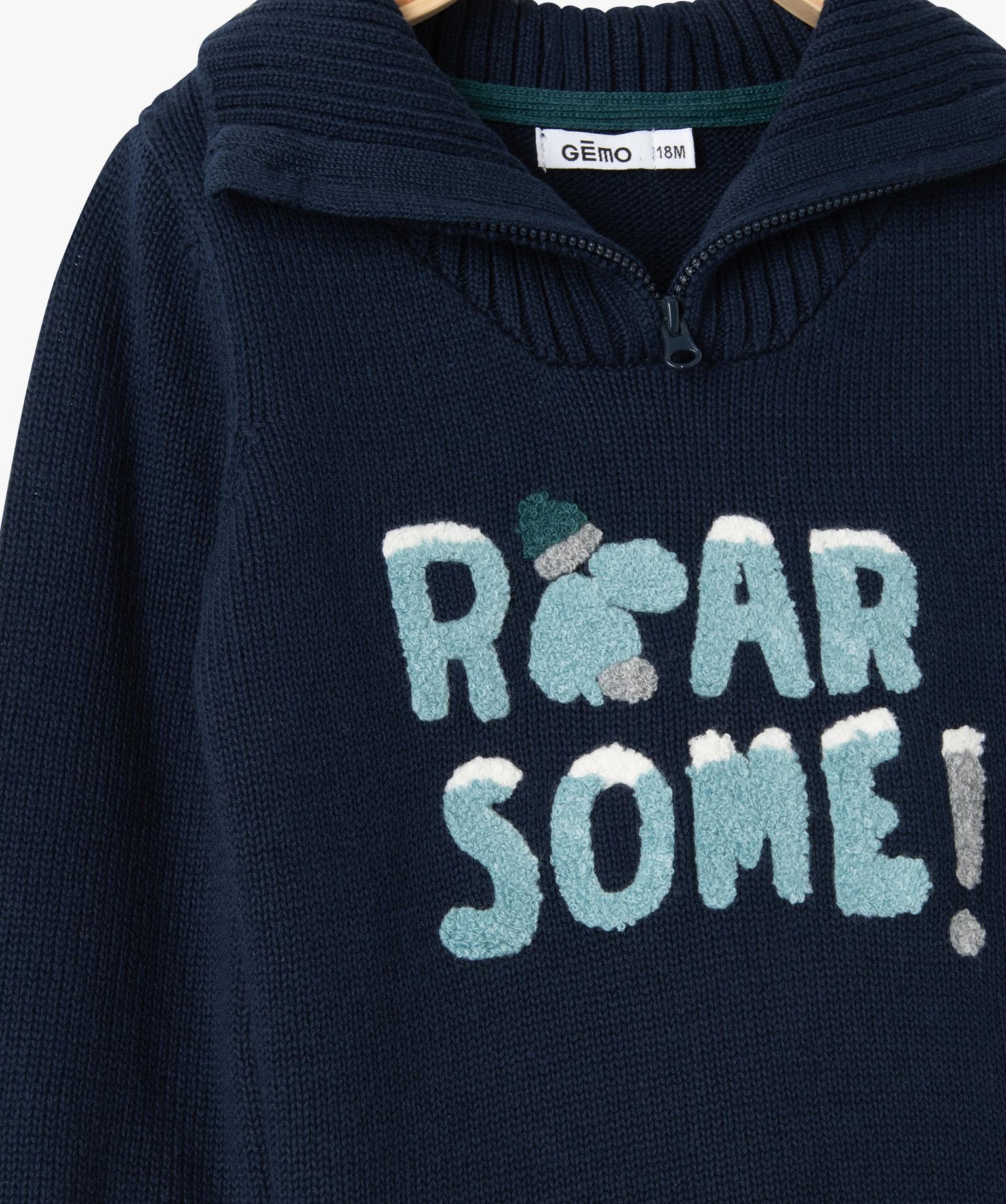 Pull bébé garçon à col camionneur et motif bouclette noir chine