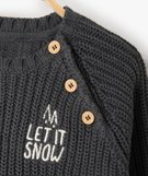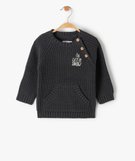 Pull bébé garçon en grosse maille avec poche kangourou gris