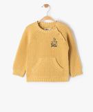 Pull bébé garçon en grosse maille avec poche kangourou jaune