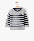 Pull bébé garçon en maille côtelée à rayures - LuluCastagnette gris clair