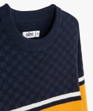 Ce joli pull garçon séduit par son association de couleurs raffinées et intemporelles. Un pull en coton tricoté dans une maille fine avec un empiècement en maille fantaisie effet damier sur la partie haute du buste, souligné par un liseré contrastant. Ce pull bicolore accompagnera avec élégance un pantalon chino et une paire de derbies. Col rond. Finitions bord-côte.