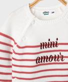 Pull brassière rayé avec message brodé bébé fille rouge