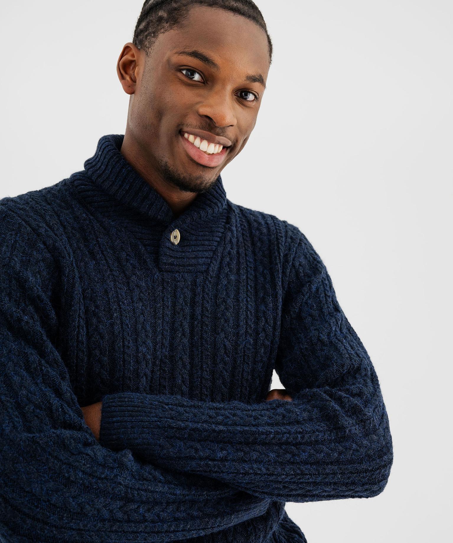 Idéal pour accompagner les looks casual de l’hiver, le pull à col châle. Ce pull pour homme tricoté dans une maille douce et confortable, arbore de jolies torsades sur l’avant et sur les manches. Son grand col en bord-côte se ferme par un bouton, permettant de moduler le décolleté. Il se porte avec un jean et des baskets comme avec un pantalon chino et des boots.