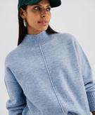 Ce pull femme vous garantit un look à la fois tendance et décontracté. Sa coupe ample avec épaules tombantes lui confère une allure loose, très en vogue. Une couture verticale en relief sur l'avant apporte une touche contemporaine, ajoutant du caractère à ce modèle. Un pull à col montant doté de larges finitions en bord-côte non resserrées. Portez-le avec un jean ou un pantalon skinny pour une tenue stylée et confortable au quotidien.