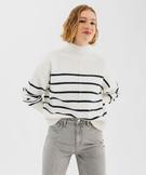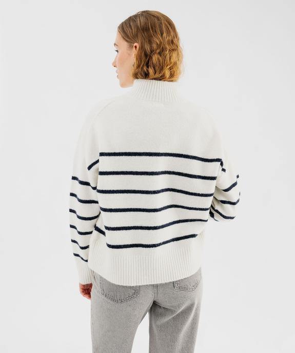 Pull col montant rayé avec couture sur l’avant femme raye noir/ecru