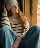 Pour un look tendance, féminin et décontracté, adoptez ce pull femme à rayures ! Il arbore une belle allure loose, très en vogue, grâce à sa coupe ample avec épaules tombantes. Une couture verticale en relief sur l'avant ajoute du caractère au modèle, tandis que les rayures apportent une note d'authenticité, façon marinière. Un pull à col montant doté de larges finitions en bord-côte non resserrées, à porter avec un jean ou un pantalon skinny en cuir imitation.
