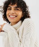 Pull col roulé en grosse maille torsadée femme - LuluCastagnette blanc chine