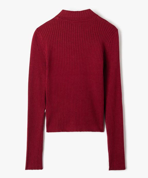 Pull court à col cheminée en maille côtelée fille rouge fonce