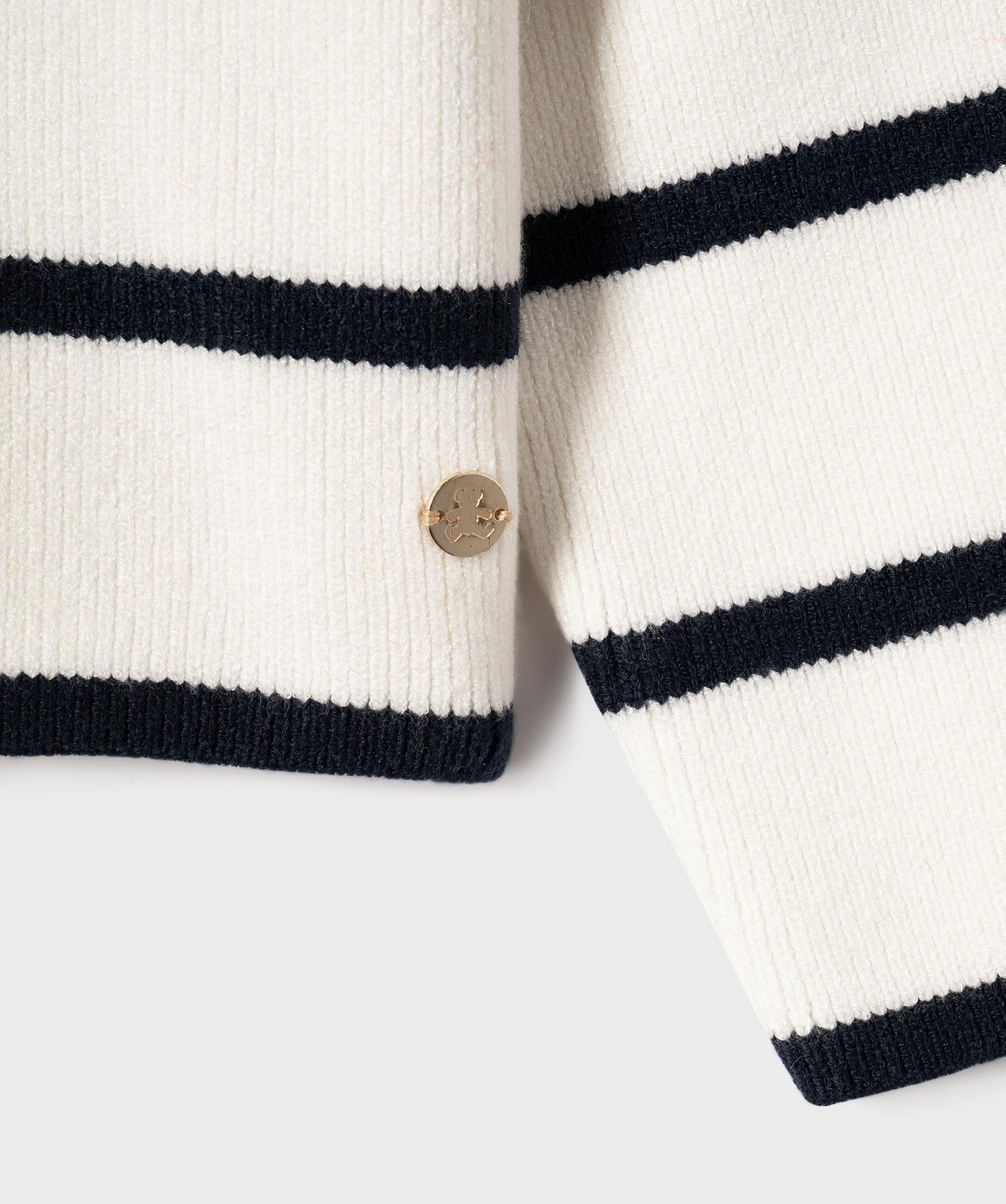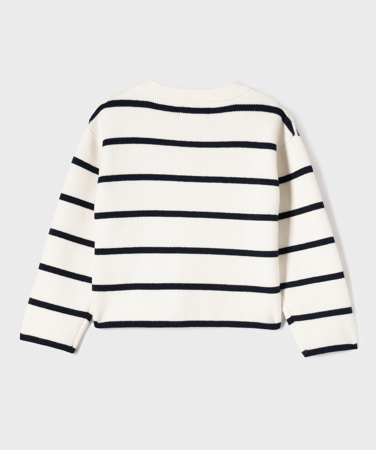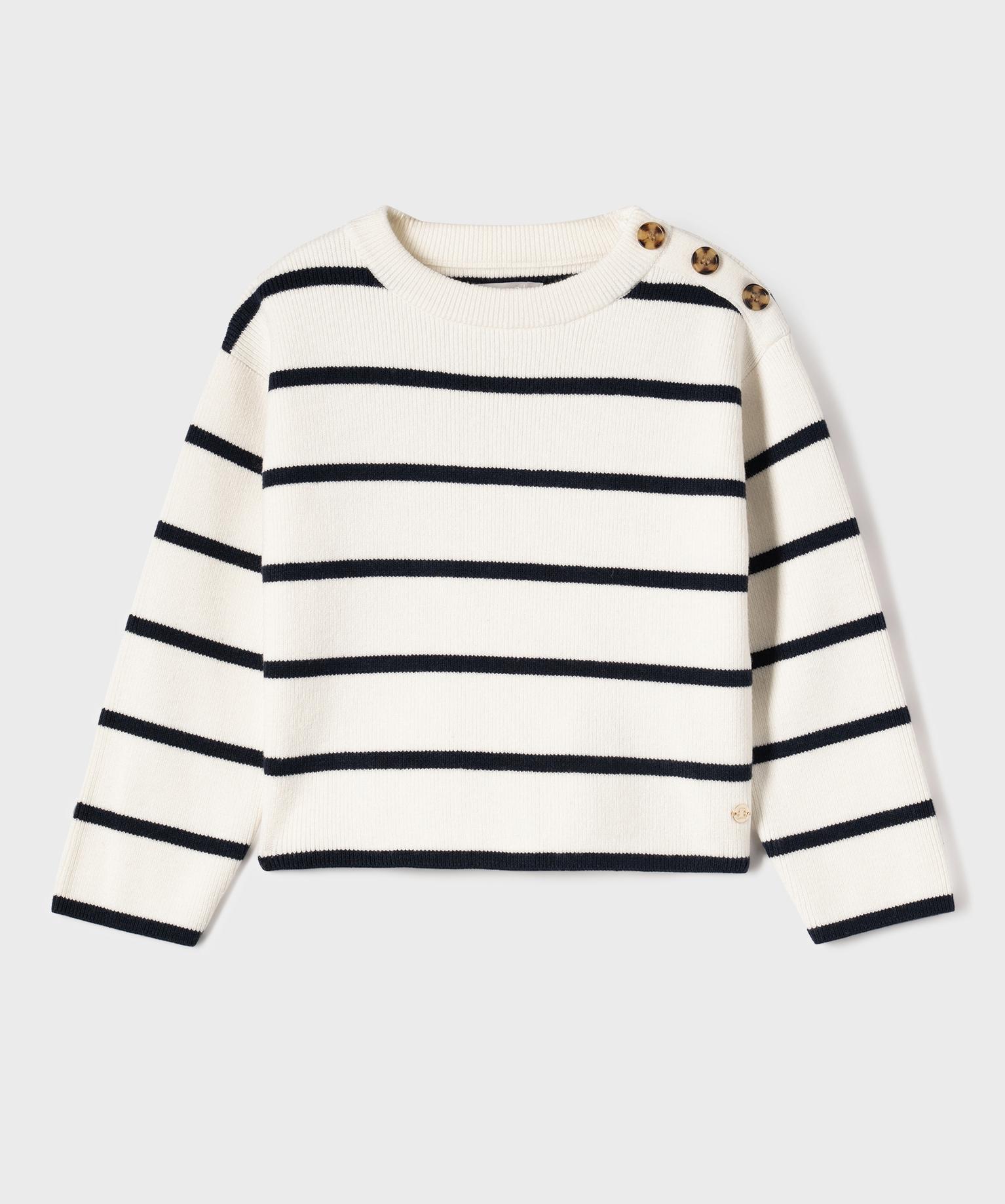 Pull court à rayures en maille côtelée fille - LuluCastagnette ecru