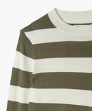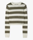 Pull court à rayures en maille fine fille kaki