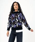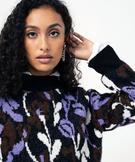 Pull court en jacquard fleuri femme noir