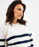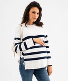 Ce ravissant pull de grossesse met votre silhouette en valeur. Grâce à sa coupe confortable avec fentes latérales et à sa matière extensible, il épouse parfaitement vos formes. Doté d’un col rond ras de cou, ce pull à rayures vous assure chaleur et style authentique tout au long de votre grossesse. Il est tricoté dans une maille douce à base de viscose. Ce pull de maternité s’accordera parfaitement avec un pantalon de grossesse coupe slim ou une jupe pour femme enceinte. Finitions bord-côte au col, aux poignets et dans le bas.