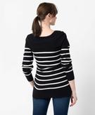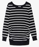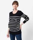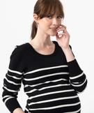 La marinière se décline aussi en version maternité ! Craquez pour ce pull de grossesse confectionné dans une maille fine et douce, conçu pour suivre l'évolution de votre corps au cours de votre grossesse. Un pull rayé, doté de fronces sur les côtés du ventre, et de petits boutons décoratifs sur l'épaule droite. À coordonner à un jean de grossesse, un trench et des tennis en toile pour une tenue confortable et tendance. Col rond dégagé en bord-côte. Grand bord-côte fin aux poignets et dans le bas.