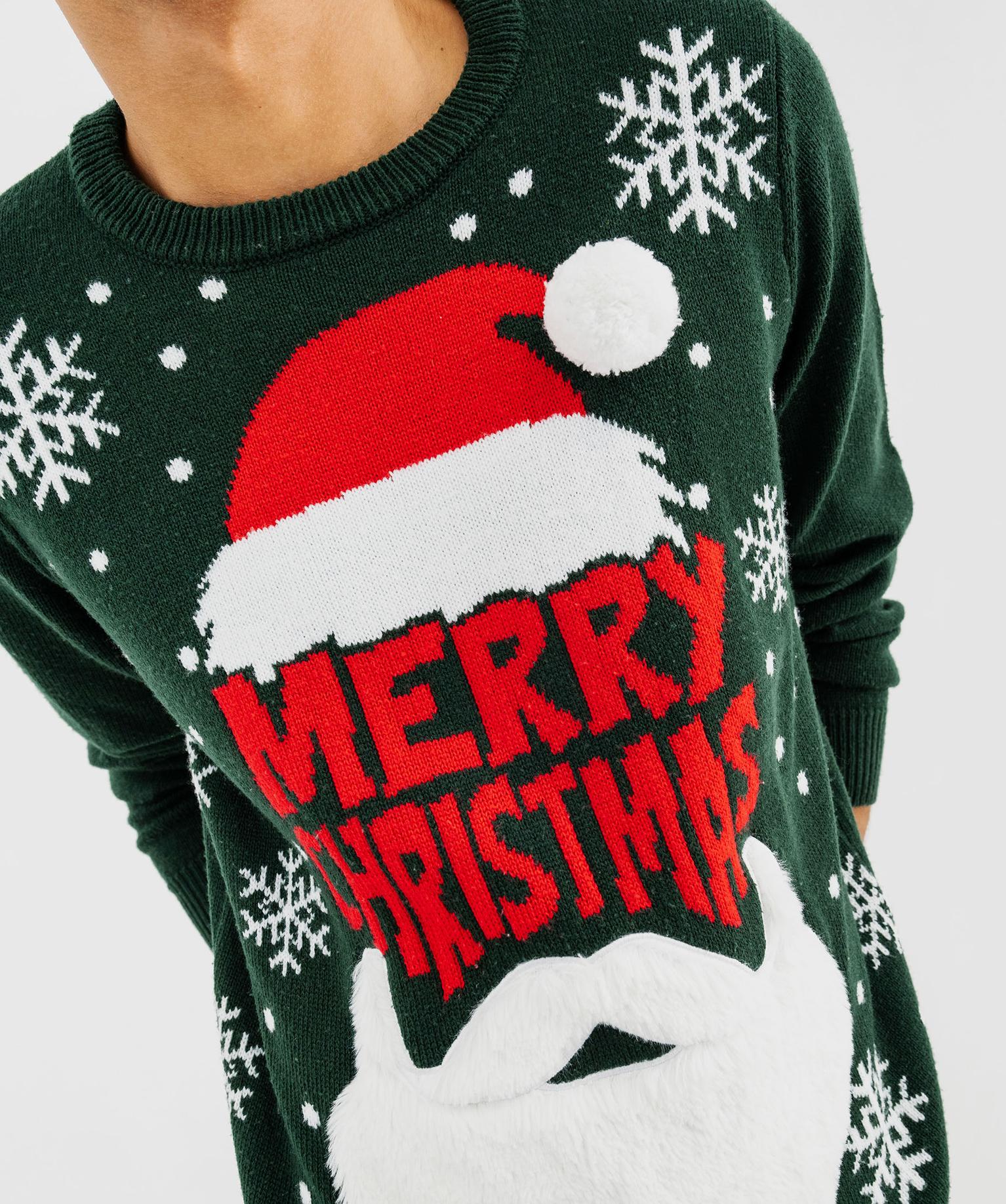 Affichez un esprit festif avec ce pull de Noël homme en jacquard ! Décoré d'une tête de Père Noël au pompon en relief et à la barbe duveteuse, le pull apporte une touche d’humour et de douceur à vos tenues. Avec sa coupe classique et son col rond, le pull se porte facilement avec un jean ou un pantalon décontracté pour une tenue de fête cosy. Finition côtelée au col, aux poignets et dans le bas. Dos uni.