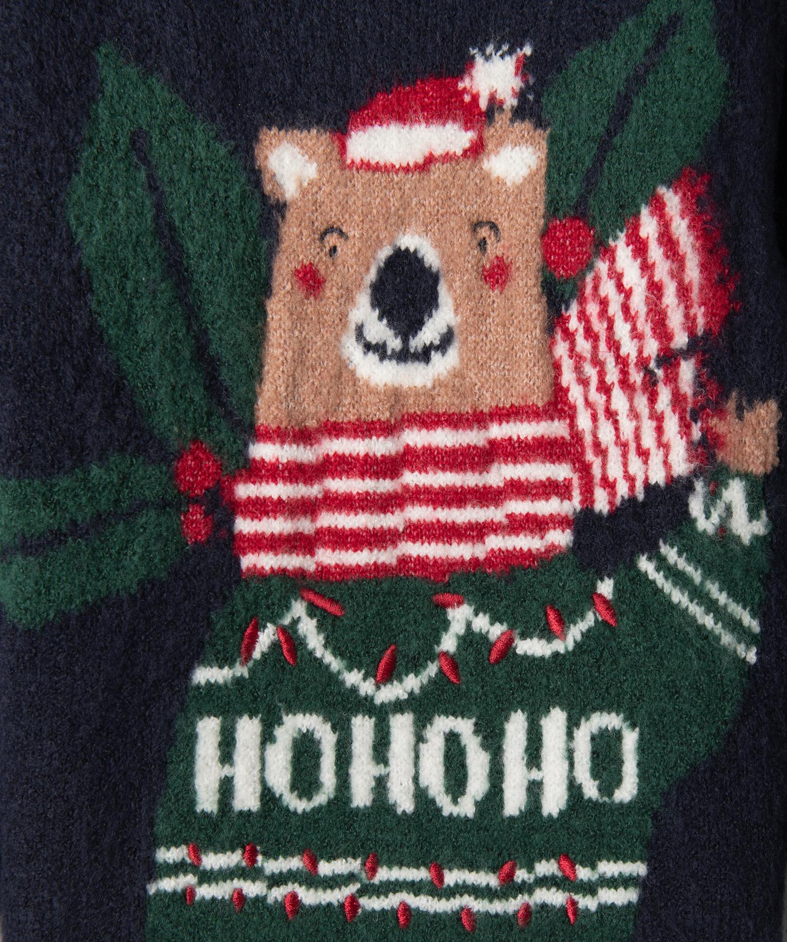 Faites entrer la magie des fêtes dans la garde-robe de votre petit garçon avec ce pull de Noël ! En maille jacquard moelleuse et extensible, le pull bébé garçon s’illustre par son grand motif ours sur le devant. Sa coupe classique est terminée par des finitions côtelées au col, aux poignets et à la base. Porté avec un jean, un chino ou un pantalon en velours, ce pull accompagne bébé aussi bien au quotidien que pour ses tenues de fête décontractées.