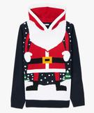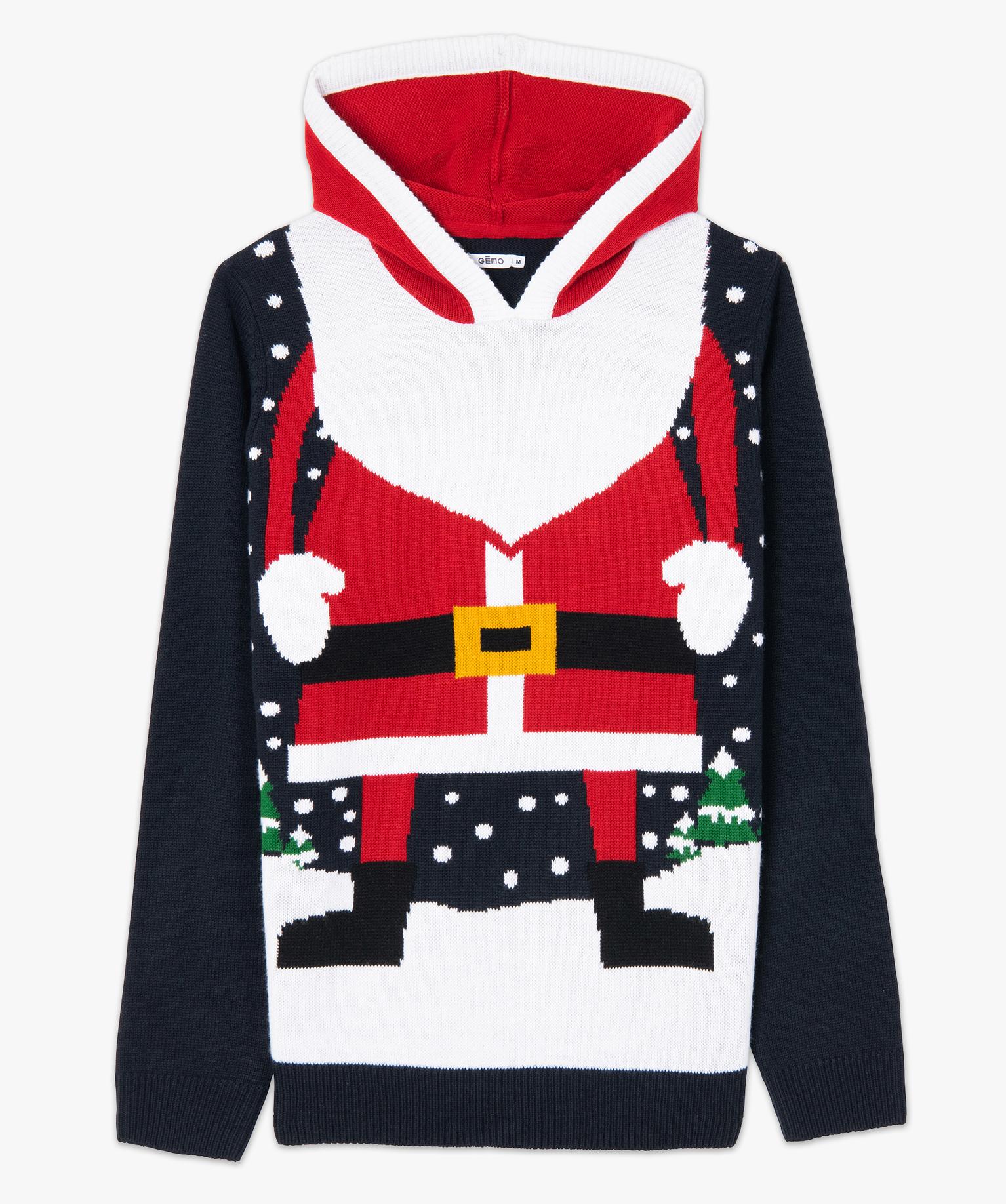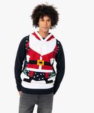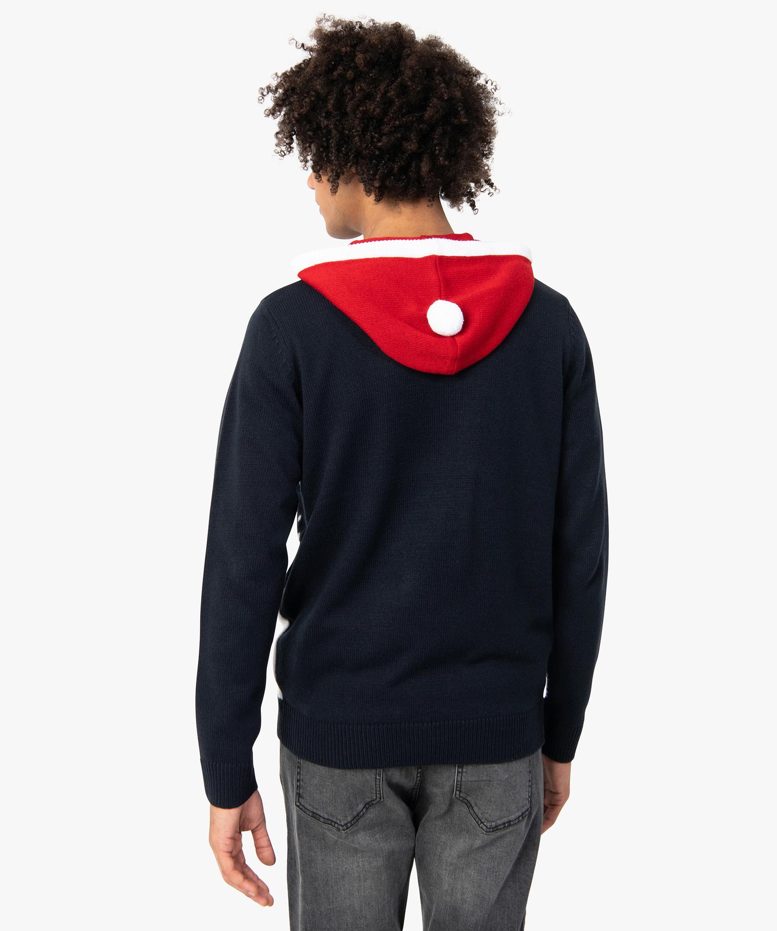 Original ce pull de Noël pour homme ! Un pull avec motif Père Noël sur l’avant et capuche à pompon. Un pull ample et confortable, à associer à un pantalon en toile et une paire de boots, idéal pour confectionner une tenue de réveillon à la fois décontractée et stylée. Il vous transforme immédiatement en Père Noël ! Finitions bord-côte sur le bord de la capuche, aux poignets et dans le bas.