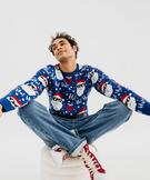 Pull de Noël motifs jacquard homme bleu