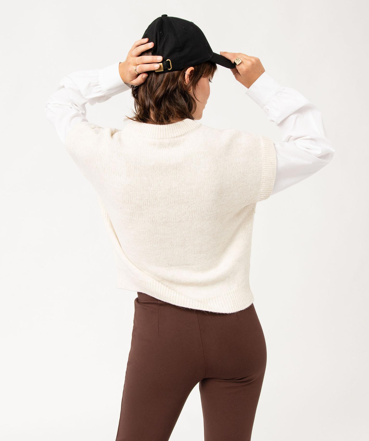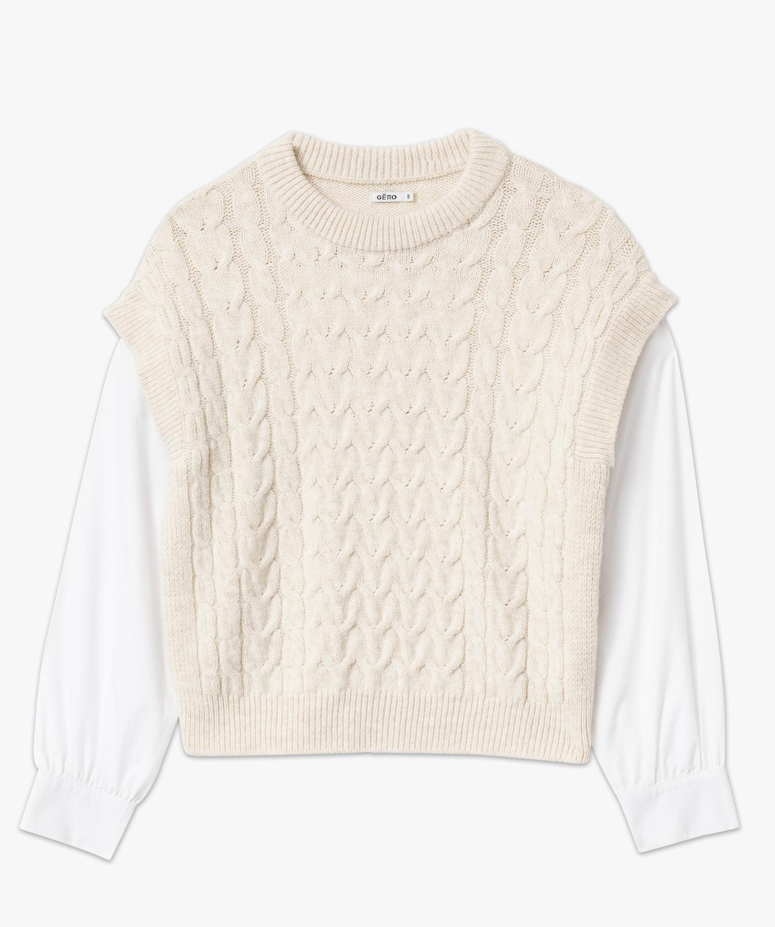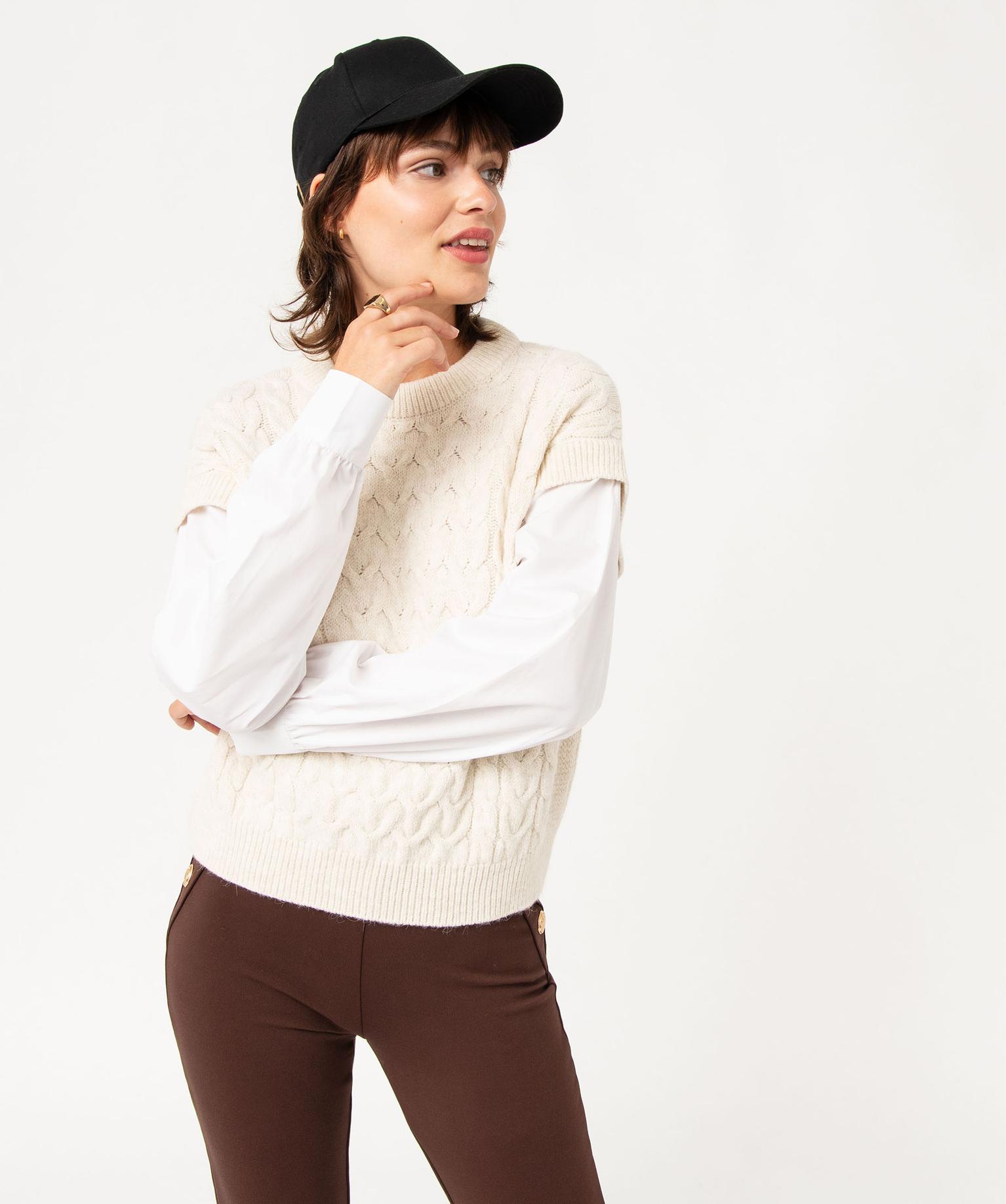 Pull effet 2-en-1 manches de chemise femme blanc chine