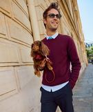 Pull en coton à col rond homme rouge fonce