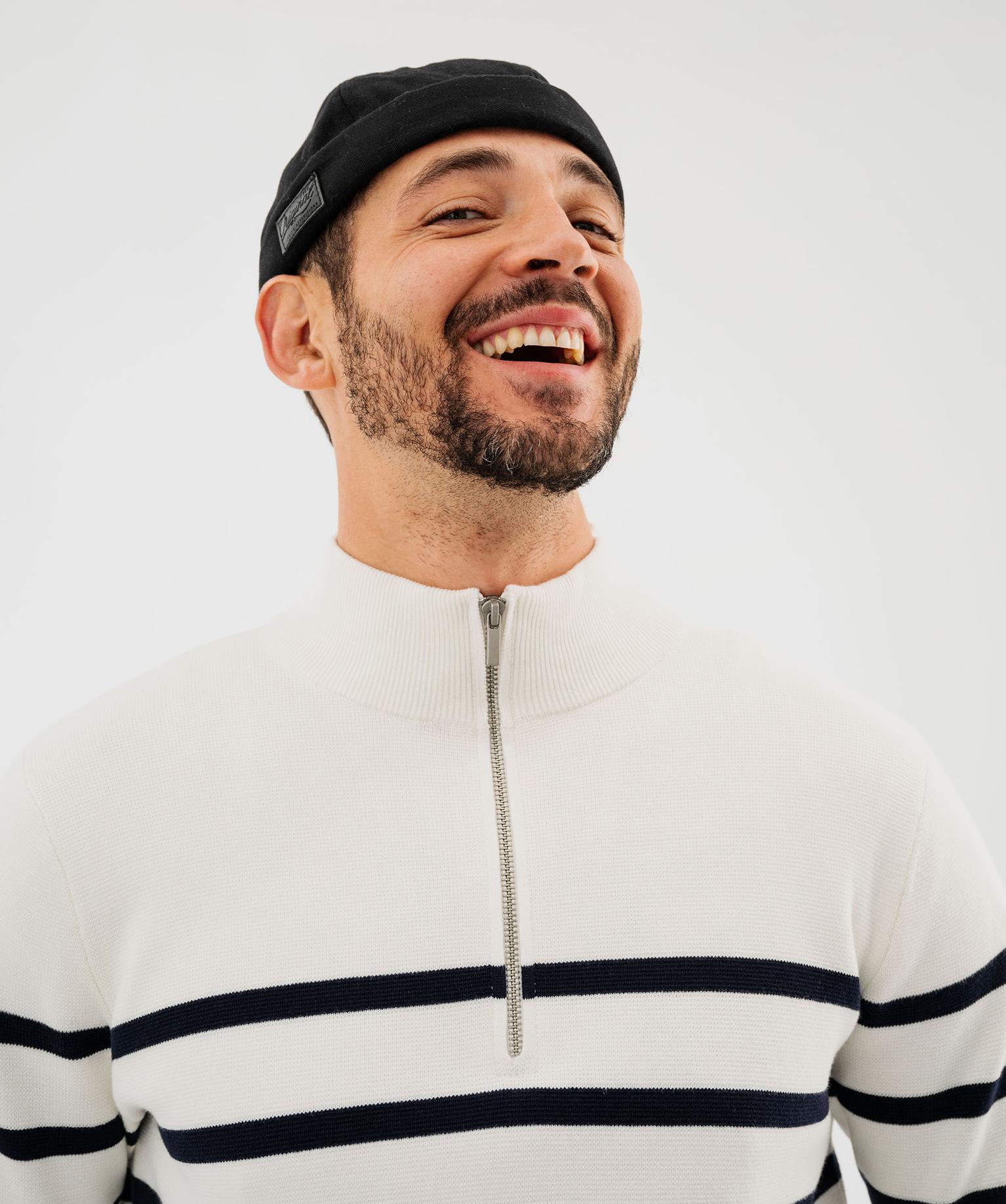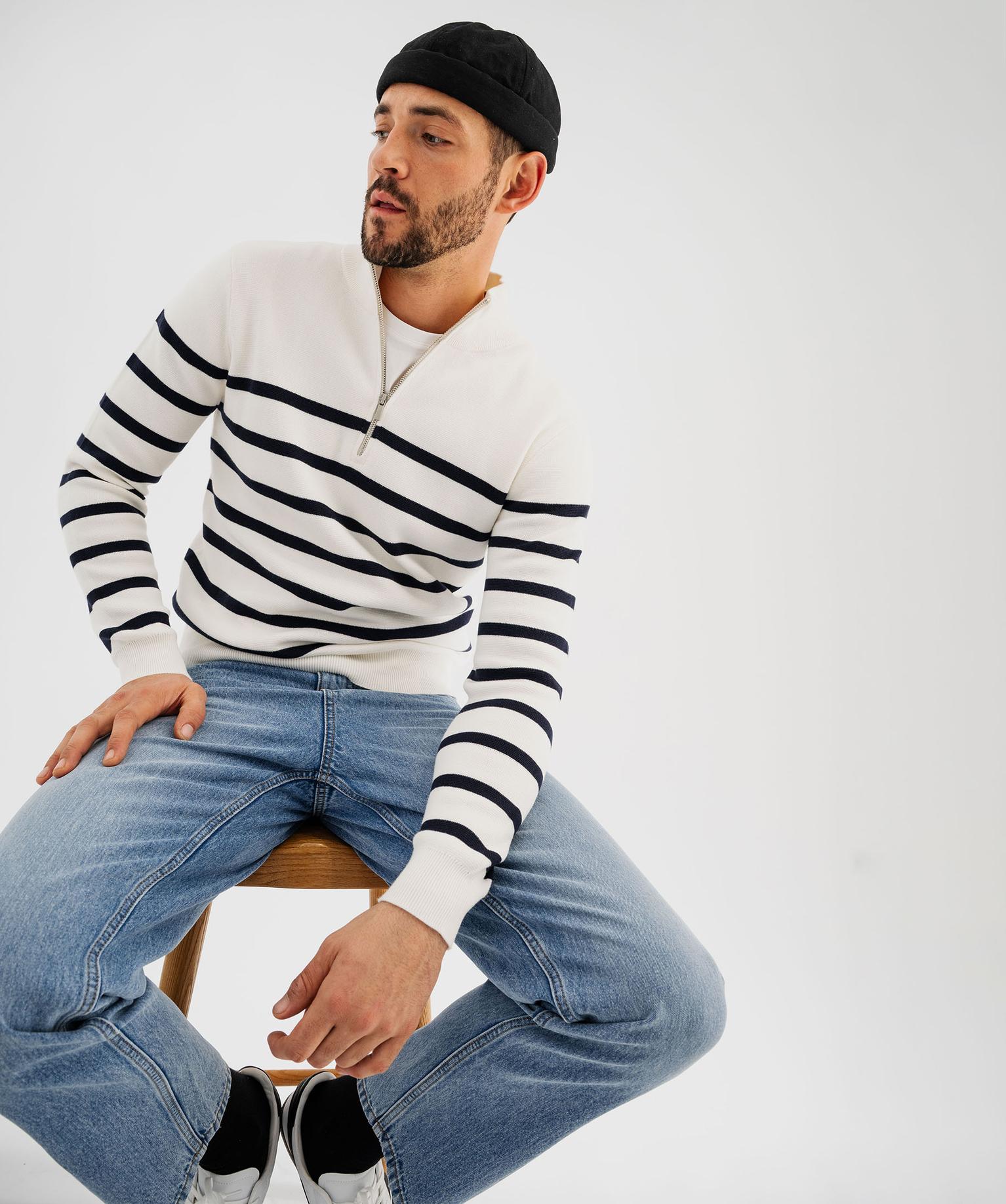 Pull en coton avec col montant zippé homme blanc
