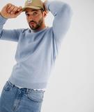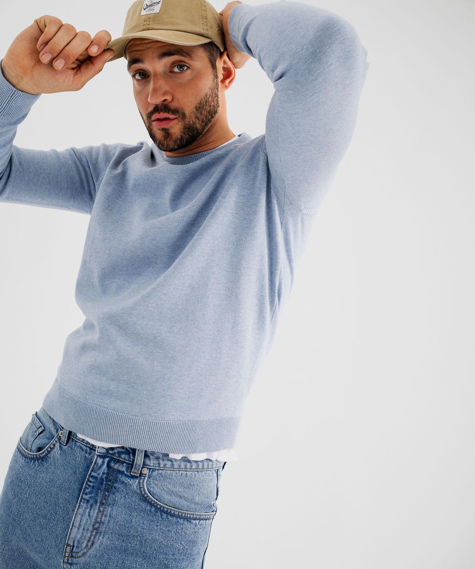 Pull en coton en maille fine à col rond homme bleu chine