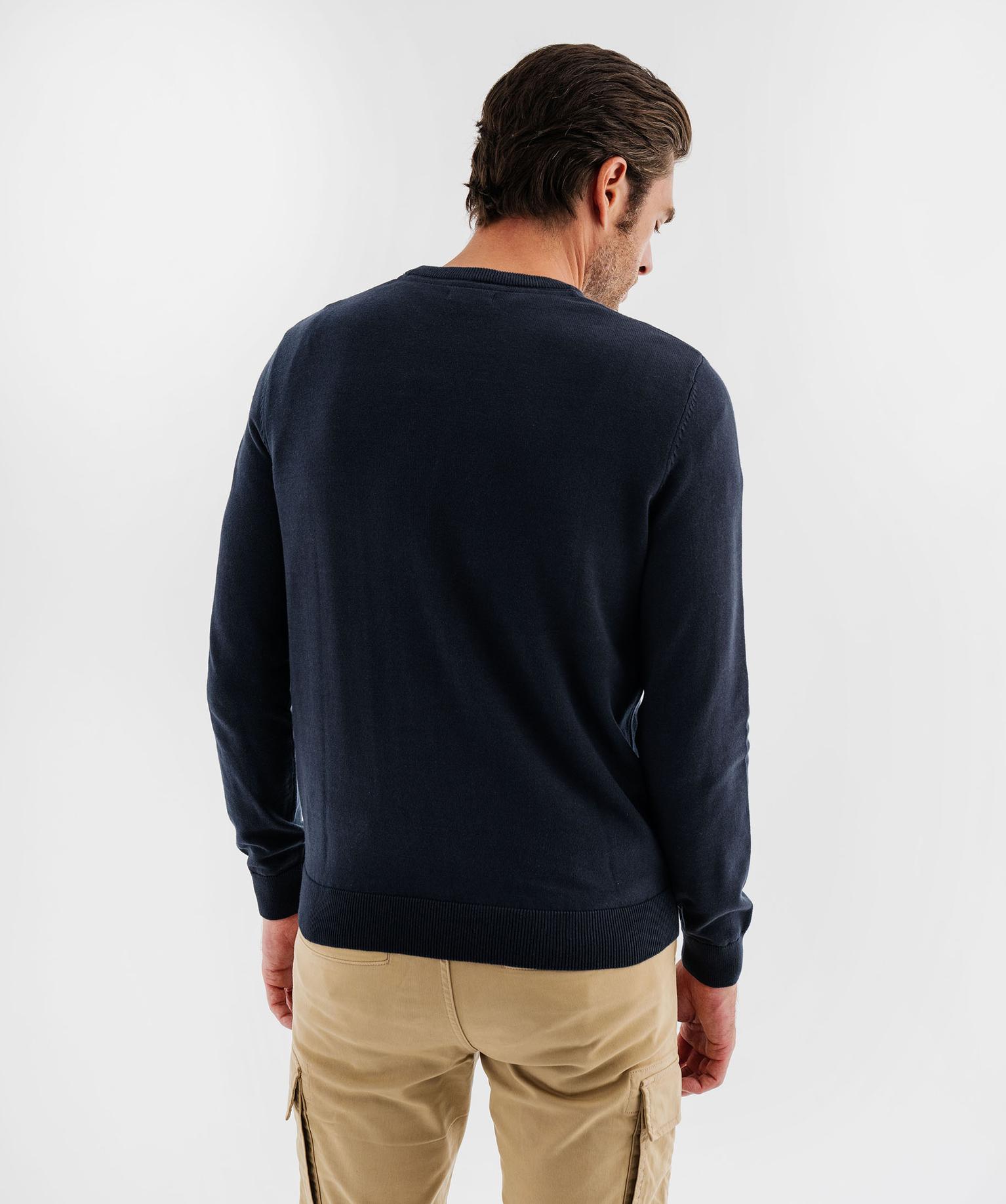 Pull en coton en maille fine à col rond homme bleu fonce