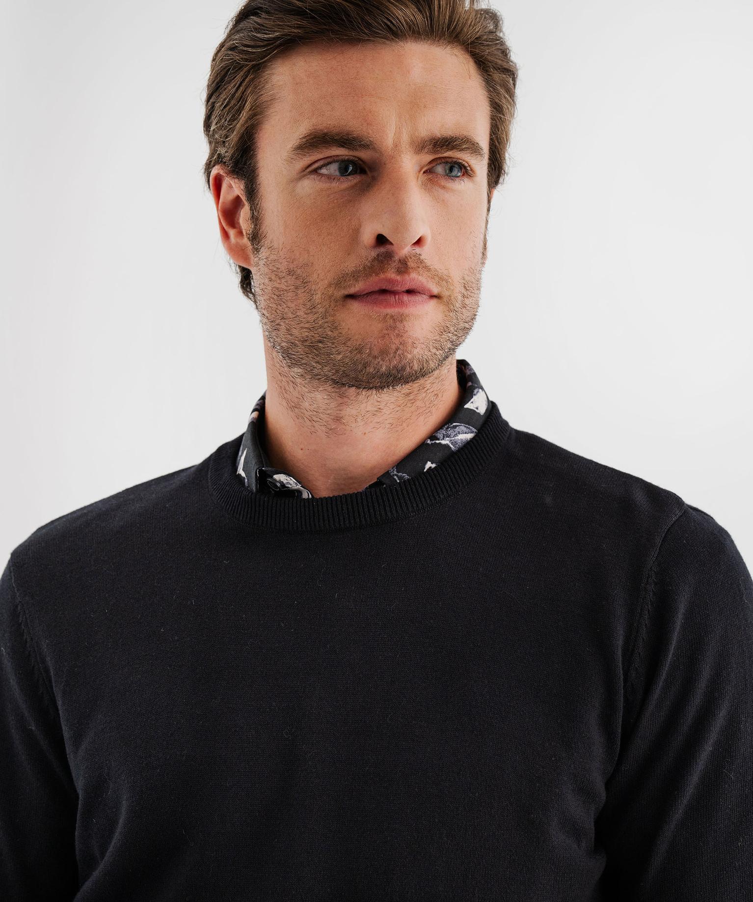 Pull en coton en maille fine à col rond homme noir